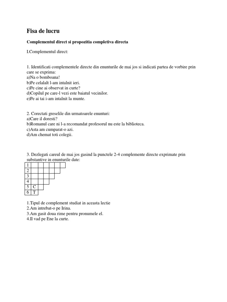 0 Test Complementul Direct Si Complementul Indirect