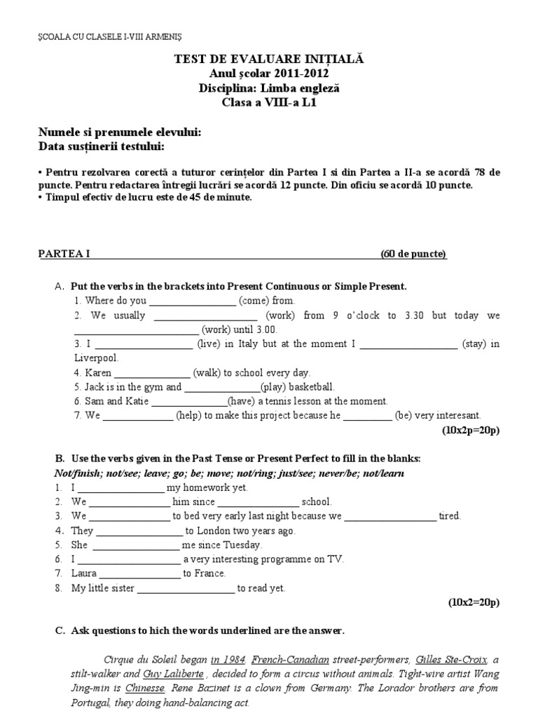 Ornisie Blog Archive Modele Teste Initiale Limba Engleza