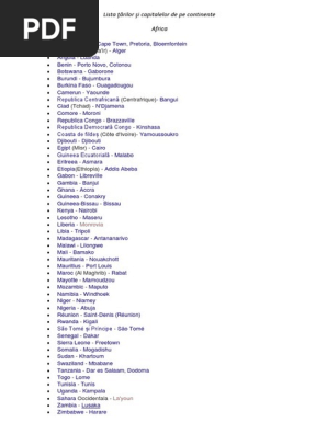 Tari Si Capitale Continente Linia Alfabetica