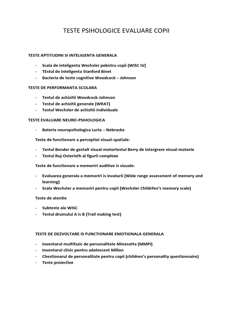 Teste De Personalitate Adolescenti